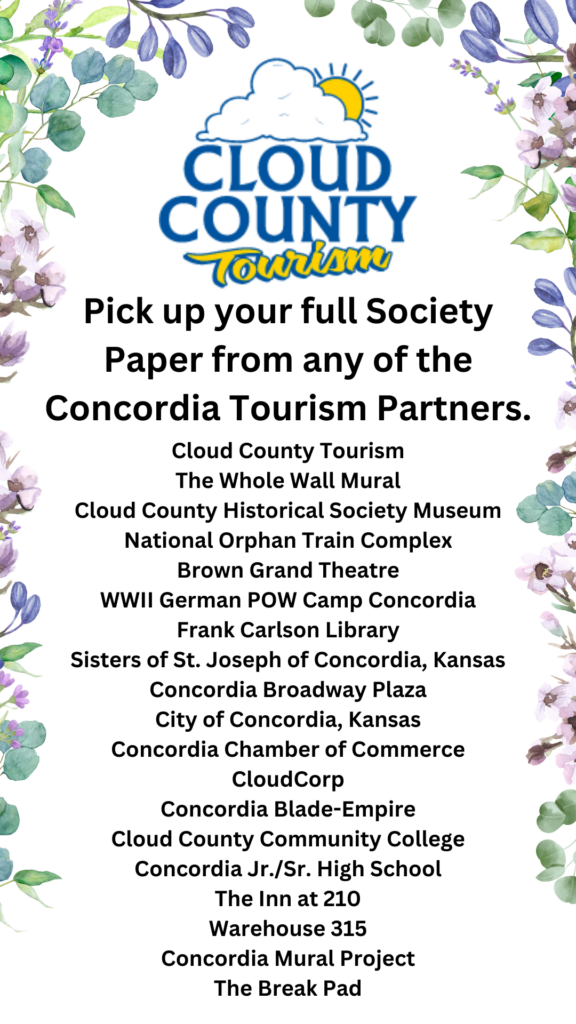 Information gathered is intended to be factual and entertaining compiled from multiple print sources and interviews of those who remember our histories. For more information on resources, please contact Cloud County Tourism.