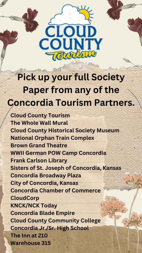 Information gathered is intended to be factual and entertaining compiled from multiple print sources and interviews of those who remember our histories. For more information on resources, please contact Cloud County Tourism.