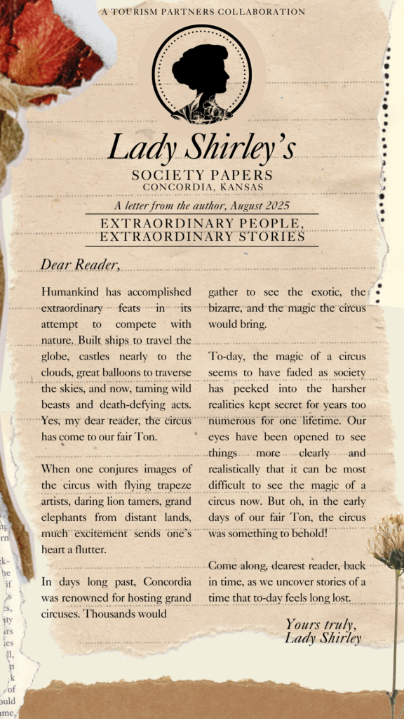 There’s something about the nostalgia of a circus that makes our eyes brighten, our hearts race in anticipation, and our minds get lost in the magic. Days of the big circuses in Concordia have long past, but those glory days shouldn’t be forgotten. We tend to see the circus with skepticism and sometimes jaded views in this modern age of information. We don’t see it with quite the level of awe and magic we did as children or years gone by.