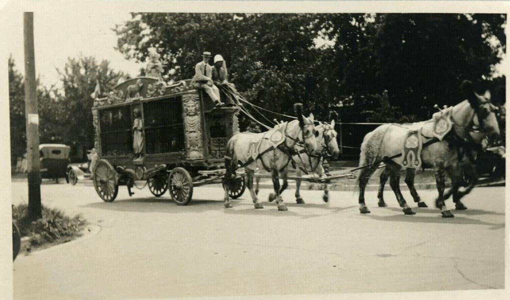 When the circus came to the Ton, the animals would be paraded through the streets to the Fairgrounds where the tent would be erected. What a sight it must have been to see dappled horses and elephants march down the street!