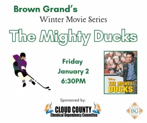 The Winter Movie Series is free and open to the public. However, we are encouraging donations to help support the Brown Grand. Concessions will also be available for purchase. The Winter Movie Series is generously sponsored by the Cloud County Chemical Dependency Committee. This is a family-friendly, chemical-free event.