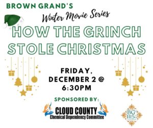 We are proud to continue the Brown Grand’s Winter Movie Series. Join us for a FREE indoor showing of How the Grinch Stole Christmas starring Jim Carrey as the Grinch. We sure hope the Grinch does not cancel Christmas! This family friendly movie is rated PG.
