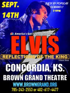 NBC’s America’s got talent finalist Joseph Hall brings his all new “ Elvis-reflections of the king” tribute show to the Brown grand theater. Travel through the legacy of the king of rock ‘n’ roll starting with the 50s as Joseph Hall hip swivels his way through the 60s and skates through the 70s. This is a lip curling fun show that will have you singing the hits of the king. Joseph is recognized by Elvis Presley enterprises as one of the top tribute acts performing today. This is a heartfelt tribute to the Legacy of Elvis Presley. Don’t wait, get your tickets today and be one of the lucky fans who gets a teddy bear or even a scarf. Fun for all ages!!