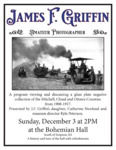 We will be viewing glass plate Negatives from the Cloud, Mitchell and Ottawa Counties taken by James Griffin from 1908-1917