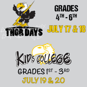We have two versions this year – Thor Days for 4th through 6th graders, which will run July 17 and 18; and Kid’s College for 1st through 3rd graders on July 19 and 20.