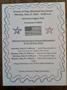 The American Legion is seeking volunteers to help put up and take down flags at the following times: