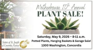 Join us at the Nazareth Motherhouse for our 10th Annual Plant Sale on Saturday, May 9th, from 8-11 a.m.! We’ll have a variety of potted plants and hanging baskets available for purchase at the convent, located at 1300 Washington St. in Concordia. These would make a perfect gift option for moms on Mother’s Day! (helpful hint, it’s the next day – May 10th!) While you’re here, stop by our garage sale and pick up your favorite items ranging from furniture, to art, to appliances, and so much more! No early sales.