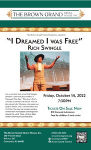 Rich Swingle has performed in 43 states, 39 nations on six continents, mostly with a dozen one-man plays he’s written or developed. “I Dreamed I Was Free” has been performed at the John Woolman Forum at George Fox University, The Lamb’s Little Theatre in New York City, and the Nordic Black Theatre in Oslo, Norway. Excerpts have been performed at the John Woolman House in Mt. Holly, New Jersey, twice. Rich has performed in about 45 films (www.IMDb.me/RichSwingle) including three that have had theatrical releases: Beyond the MaskAlone Yet Not Alone and Providence. Rich has received several awards, including People’s Choice: Actor of the Year at the International Christian Music and Film Festival, 2021. Rich has taught in about 100 schools, including an annual presentation skills workshop at Princeton University. He’s grateful to his bride and to his Lord.