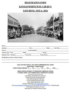 Two caravans of vehicles will depart at 8AM on Saturday, May 6th. One in Atchison, the other in Concordia. The two caravans will meet in the middle in Frankfort, KS that afternoon for a celebration & car show.