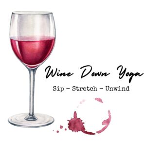 60 minute relaxing yoga flow, perfect for all levels. BYOWine – travel mugs work great for class to avoid spills and breaks. Must be 21 to register.